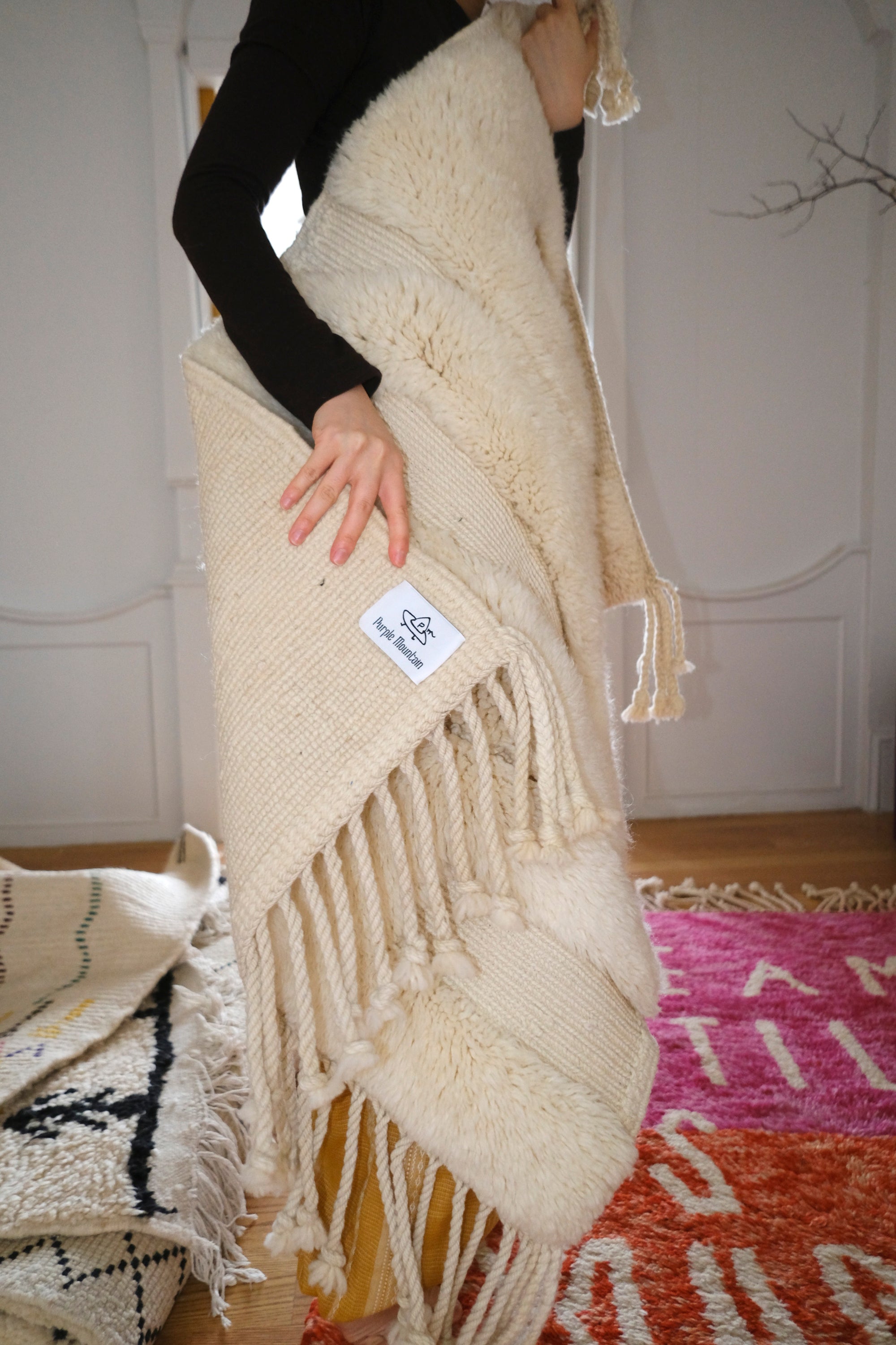 In 2021, Purple opened Pmhomny in Brooklyn and curated its first collection of rugs sourced from a village in the Atlas Mountains. Alongside of Pmhomny , Purple also opened a sister shop -PURMOU in China, with all the rugs sourced from Morocco.